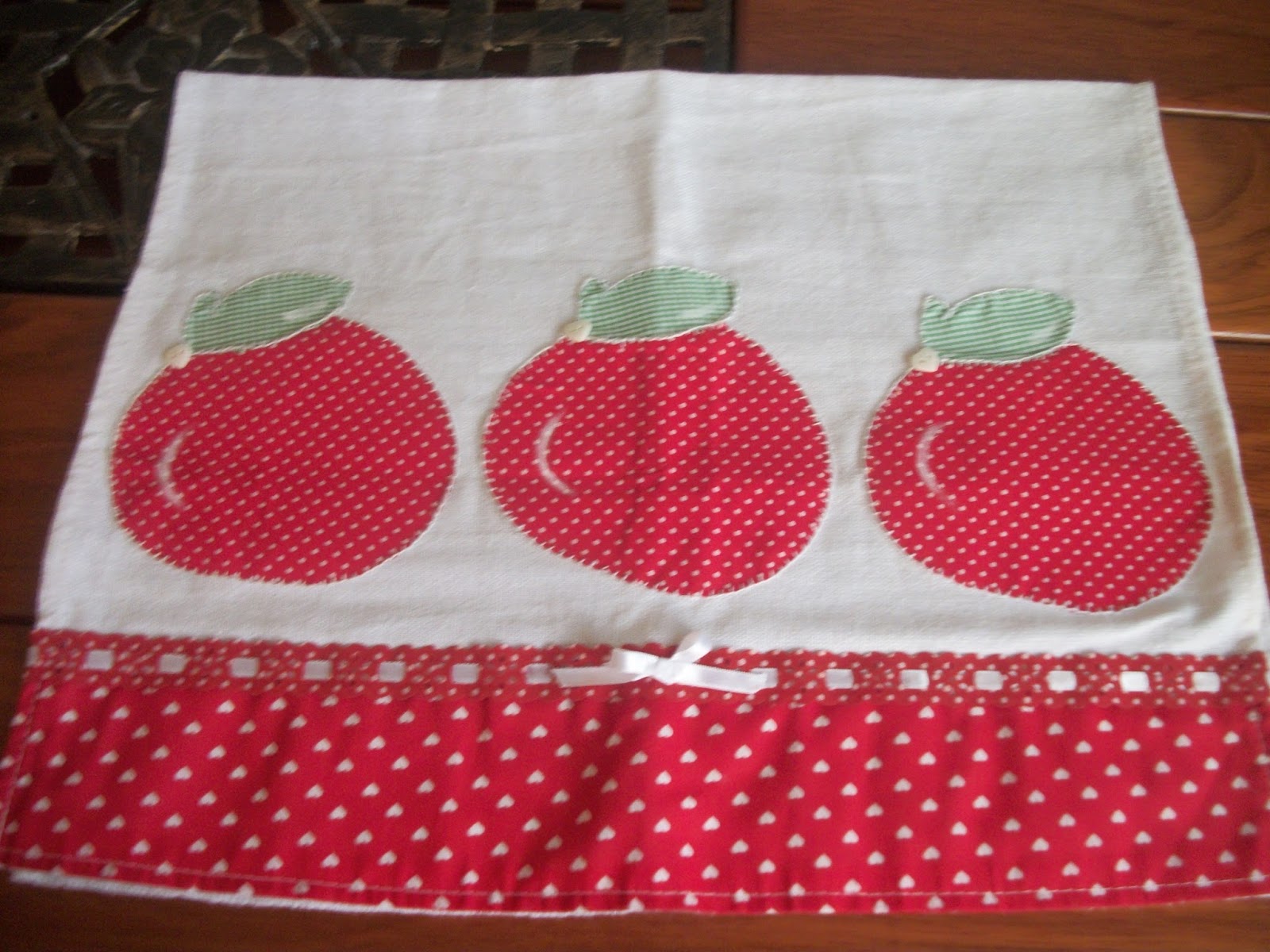 Feliz 2016 para todas/os que visitam o meu blog e prestigiam as minhas postagens. Primeira postagem do ano é sobre costurinha de um pano de prato feito em composê de tecidos e maçãs feitas com a técnica de patchcolagem com caseado. Depois passei e fiz um embrulho que amassou na mala... kkk... Dei de presente e quem ganhou gostou! Mulheres gostam de ganhar paninhos para usar na cozinha ou enfeitar.